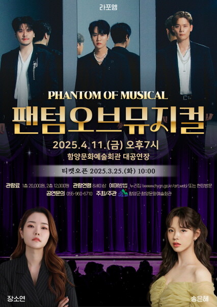함양문화예술회관 관계자는 "뮤지컬 명작의 감동과 크로스오버 음악의 매력을 결합한 환상적인 무대 '팬텀 오브 뮤지컬'공연을 통해 지역문화 예술의 발전과 함께 관객들에게 새로운 감동을 선사하고자 한다"고 전했다.