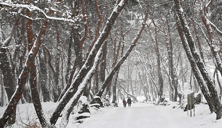 ▲ 전국에 폭설이 내린 지난 7일 경남 거창군 웅양면 동호리 동호숲에 많은 눈이 내리고 있는 모습 [거창군 제공]
