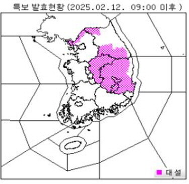 ▲ 12일 오전 9시 기준 기상청 대설주의보 현황표