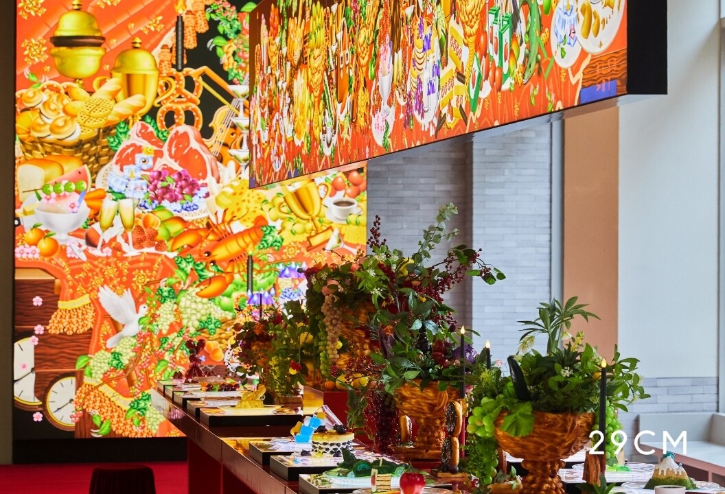 오프라인에서는 이색 전시를 진행한다. 29CM는 '메리 실리 다이닝: 비 아워 게스트'를 주제로 다음 달 14일까지 서울 성동구에 위치한 이구성수에서 연말 전시를 진행한다. 독특한 아트워크로 주목받는 홍지 작가와 협업한 전시를 선보인다. 붉은색 식탁 위에 펼쳐진 그림 문자로 만찬의 즐거움을 표현했다. 이구성수에서는 겨울 여성 패션·잡화 브랜드 전시도 선보인다.