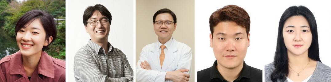 | ▲ 왼쪽부터 UNIST 박태은·강현욱 교수, 서울아산병원 명승재 교수, UNIST 한종혁 박사(현 에모리의과대학 소속), UNIST 정혜진 박사(현 IBS소속) [울산과학기술원 제공] |