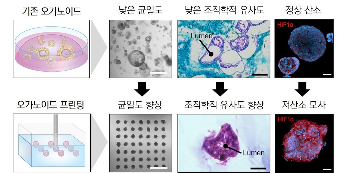 UNIST(울산과학기술원)는 바이오메디컬공학과 박태은·강현욱 교수팀과 서울아산병원 명승재 교수팀이 실제 암 조직의 고경도·저산소 환경을 재현하는 인공 암 조직 'Eba-PDO'를 개발했다고 29일 밝혔다.