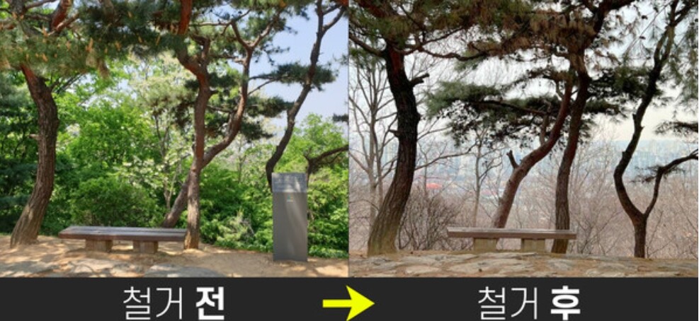 | ▲ 일산 정발산 김대중 벤치 옆에 있던 안내판이 철거돼 있다. [정진경 전 청와대 행정관 제공] |