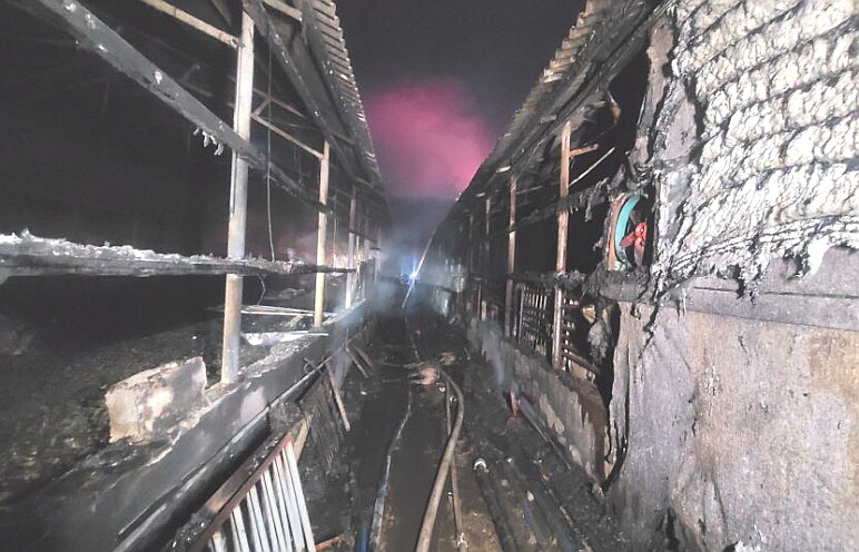 | ▲ 8일 새벽 양산 원동면 화제리 돼지농장에서 발생한 화재 현장 [경남소방본부 제공] |