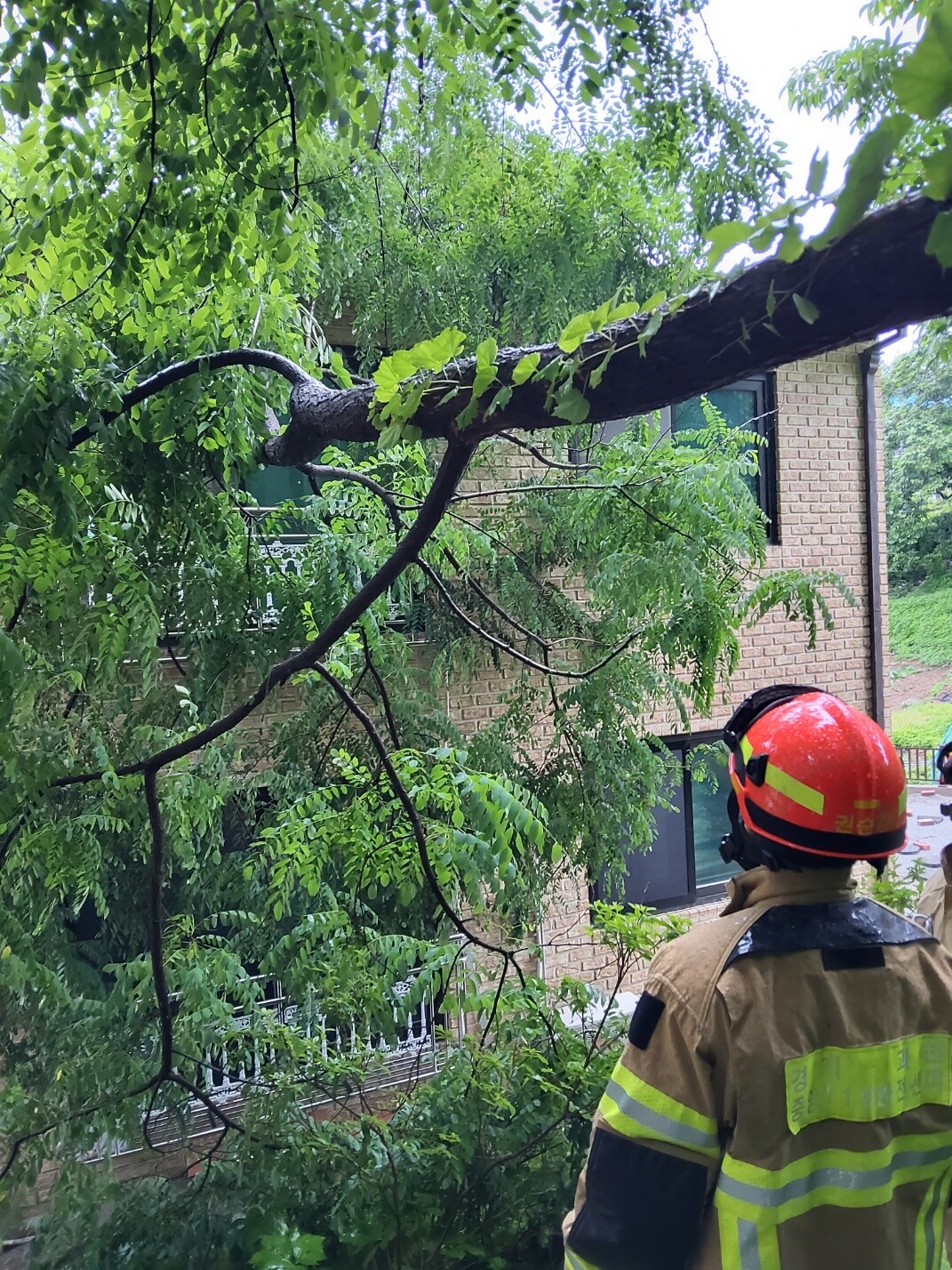 | ▲ 20일 오전 과천시 문원동 단독주택에 수목이 쓰러진 모습. [경기도소방재난본부 제공] |
