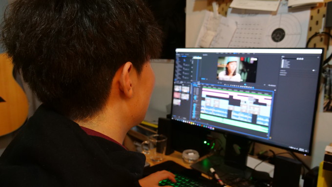 ▲ 조민근씨가 서울 용산구 소월로에 있는 자신의 집이자 작업실에서 의뢰받은 영상을 만들고 있다. [김혜란 기자]