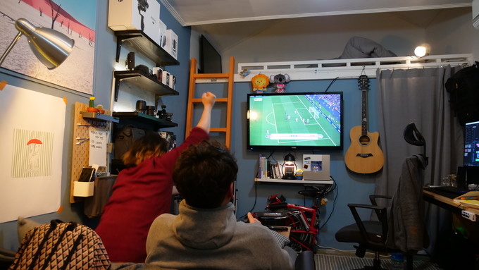 ▲ 조민근씨의 집에서 그의 친구들이 게임을 즐기고 있다. 조씨의 집은 친구들에게도 소확행을 누리는 공간이다.  [김혜란 기자]