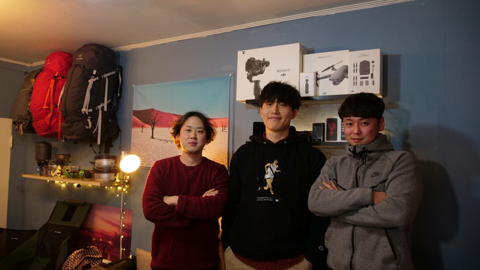 ▲ 다니던 회사를 그만두고 영상 작업을 하는 프리랜서로 변신한 조민근씨(가운데)가 자신의 집이자 작업실에 놀러온 친구들과 포즈를 취하고 있다. 조씨는 지금이 가장 행복하다고 했다. [김혜란 기자]