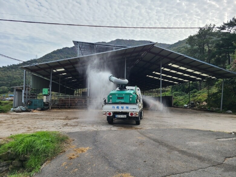 ▲ 구제역 방역 작업 모습 [남해군 제공]