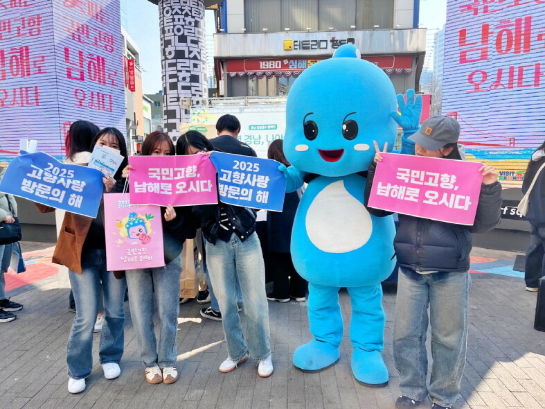 남해군 마스코트 해랑이를 앞세워 '고향사랑 방문의 해, 국민고향 남해로'를 알렸으며, 오는 28일과 29일 양일간 열리는 '꽃피는 남해'를 홍보하기 위해 구슬땀을 흘렸다.