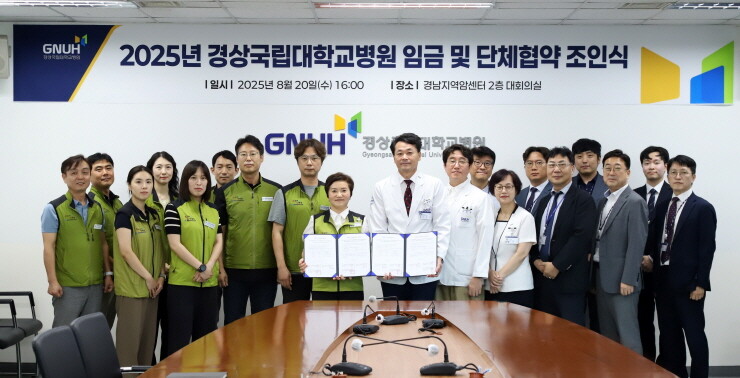 경상국립대학교병원(병원장 안성기)은 20일 경남지역암센터 회의실에서 '2025년도 임금·단체협약 조인식'을 개최했다.