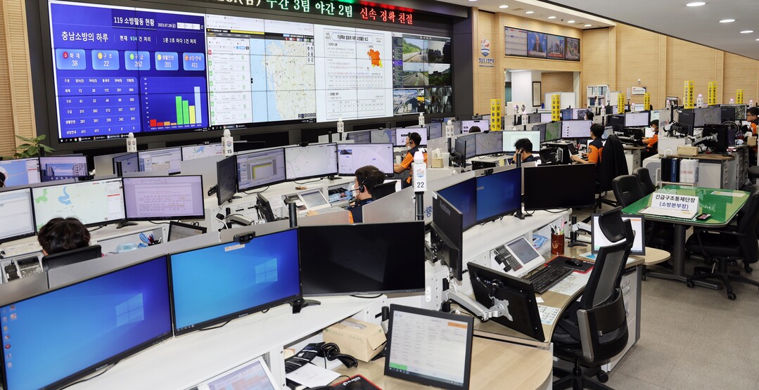 ▲충남도 소방본부 119종합상황실.[도소방본부 제공]