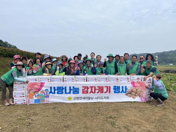 경남 남해군 고현면 새마을남녀지도자협의회(회장 김성주, 부녀회장 한계선)는 9일 대사리 뚝방길 경작지에서 30여 명이 참여한 가운데 '사랑나눔 감자캐기' 행사를 실시했다.