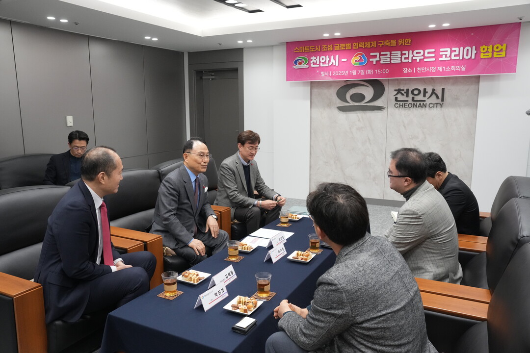 ▲박상돈 천안시장이 구글클라우드 코리아측과 협업을 논의하고 있다.[천안시 제공]