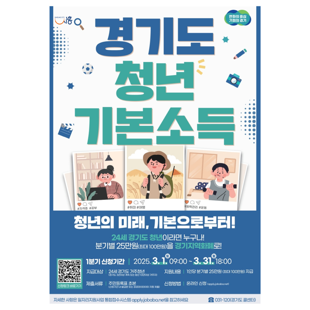 [시흥 소식] 3월 한달간 '2025년 1분기 청년기본소득' 접수