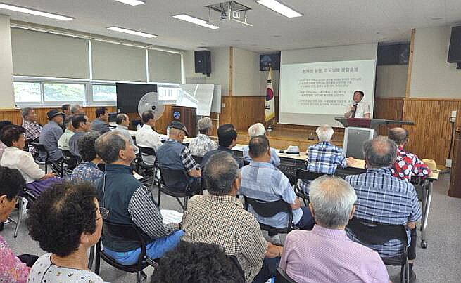 | ▲ 박영규 부군수가 남면 노인대학에서 특강을 하고 있다. [남해군 제공] |