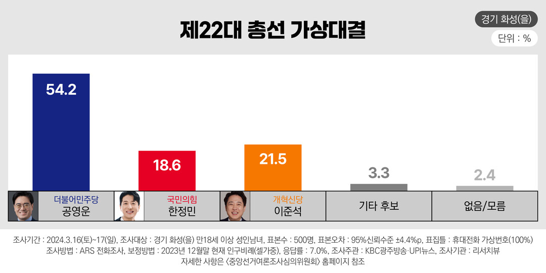 KPI뉴스 - 화성을…공영운 54.2% 이준석 21.5% 한정민 18.6%
