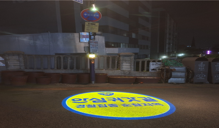 | ▲ 안심귀갓길에 설치된 로고젝터. [수원시 제공] |