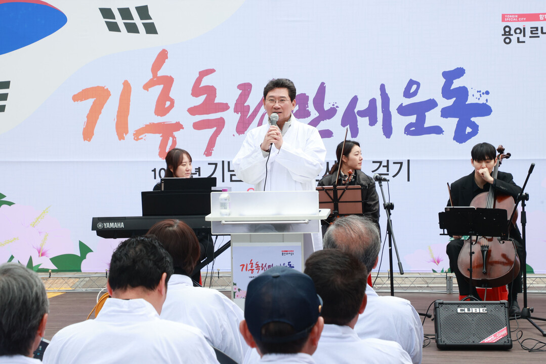 이상일 시장은 "만세 운동이 벌어진 곳에서 지역 단위로, 마을 단위로 '대한독립 만세'의 함성을 기억하고 선열의 고귀한 뜻을 이어받겠다고 행사를 하는 경우는 전국에서도 흔치 않다"며 "106년 전 그날을 기억하는 것은 우리가 다시는 외침을 받지 않겠다는 다짐이자 선열이 일으켜 세워주신 이 나라를 더욱 발전시키겠다는 의지를 담은 것"이라고 말했다.