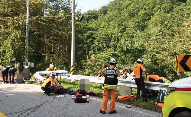 22일 오전 7시 33분께 강원 삼척시 가곡면 풍곡리의 한 도로에서 스타렉스 승합차 1대가 가드레일을 들이받고 추락해 16명의 사상자가 났다.