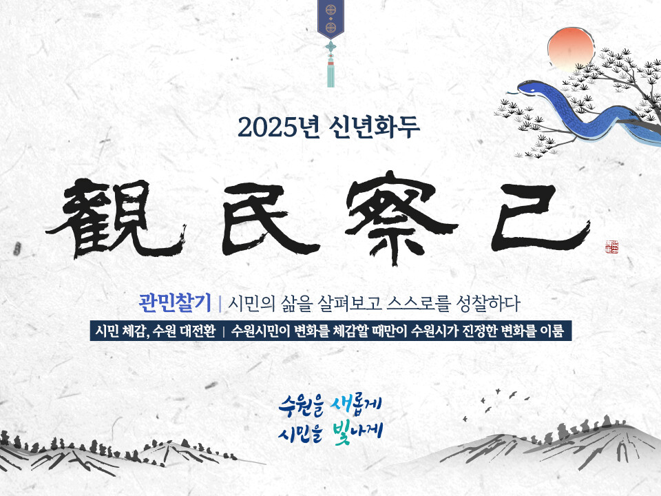 수원시는 '관민찰기(觀民察己)'를 2025년 신년화두로 정했다고 2일 밝혔다. 시민이 체감하는 행정 대전환을 이루겠다는 의미다.