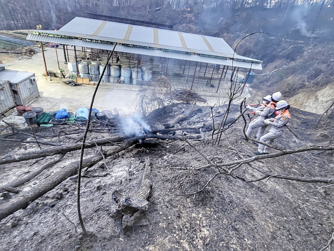 산불영향구역 85㏊에 총 화선은 10.5㎞(진화 3.5㎞, 진화 ㎞)이다. 현장에는 최대 8m/s 남서풍이 불고 있고, 기온 13.7도, 습도 47%다.