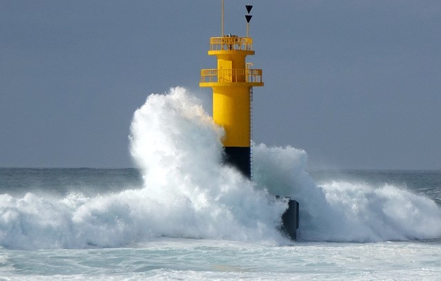 ▲ 제19호 태풍 솔릭의 영향으로 22일 오전 제주도 서귀포시 남원읍 남원1리 포구 등대를 중심으로 거센 파도가 몰아치고 있다. [뉴시스]
