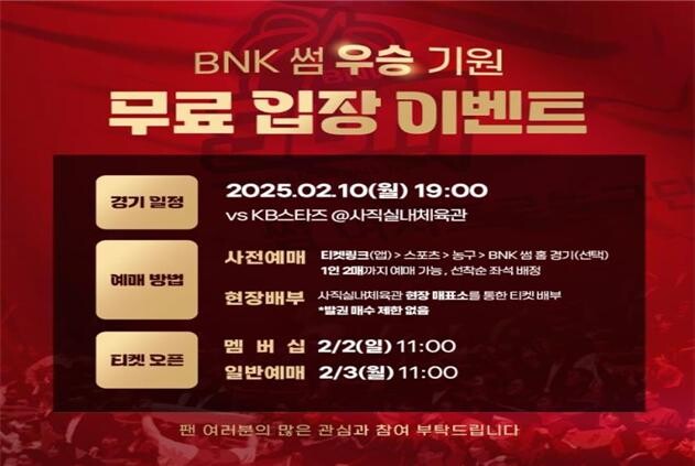 BNK썸 프로농구단 우승 기원 '무료관람' 이벤트