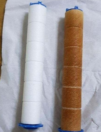 ▲ 붉은 수돗물로 오염된 필터 [인천서구평화복지연대 제공]