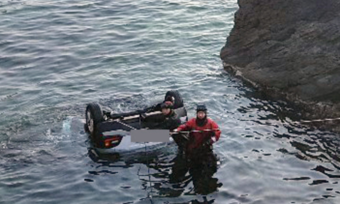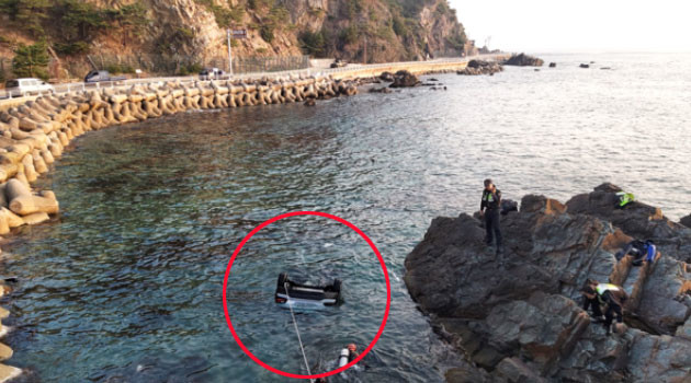 경찰과 소방당국에 따르면 이날 오전 6시 31분께 금진리 해안도로 인근 바다에 "차 한 대가 떨어져 있다"는 신고가 접수됐다.