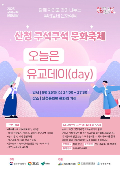 산청군은 오는 25일 산청읍 문화의 거리에서 '산청 구석구석 문화배달'행사를 추진한다.
