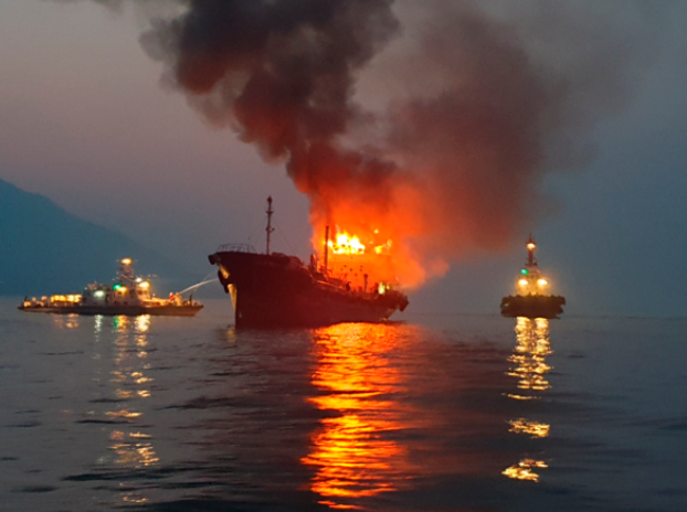 20일 오전 5시38분께 전남 여수시 오동도 동쪽 약 5㎞ 해상에서 494t급 석유제품운반선에서 불이 났다.