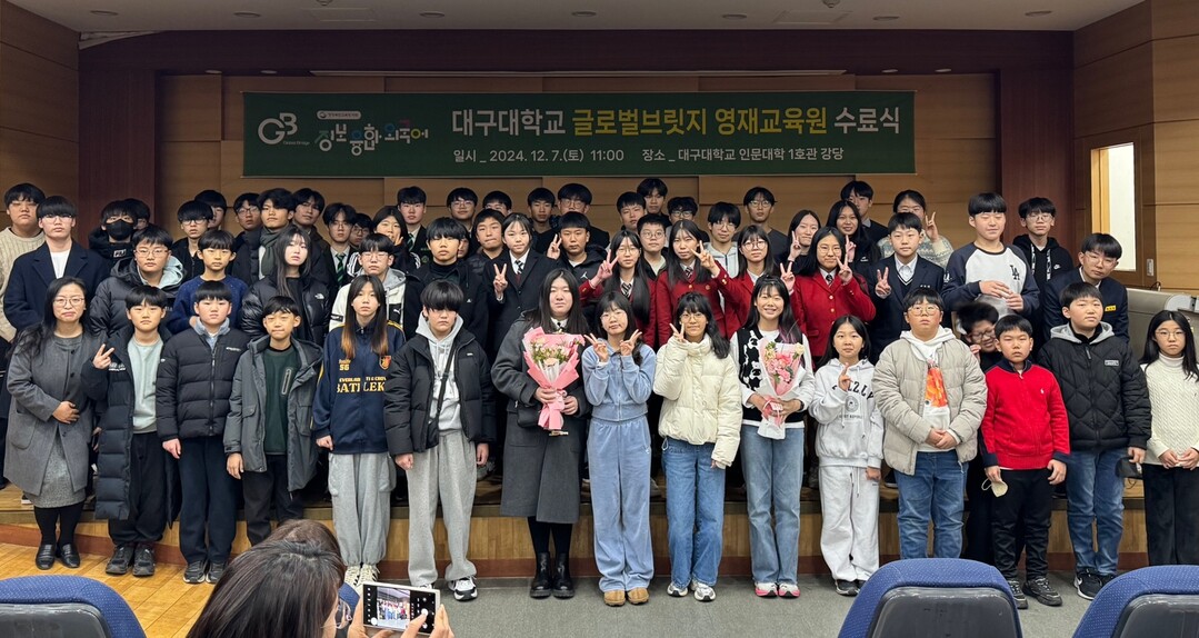 올해로 개원 10주년을 맞이하는 대구대 글로벌브릿지 영재교육원이 지난 7일 경산캠퍼스 인문대학 강당에서 2024학년도 성과보고회와 수료식을 개최했다고 대학이 12일 밝혔다.