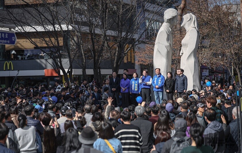 | ▲이재명 대표가 23일 의정부 제일시장에서 선거유세를 하고 있다. [더불어민주당 홈페이지] |