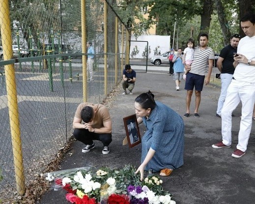 지난 19일 오후 데니스 텐의 사망 소식을 접한 알마티시민들은 사건 현장인 쿠르만가지-바이세이토바에 몰려가 꽃을 놓고 고인의 죽음을 슬퍼했다.