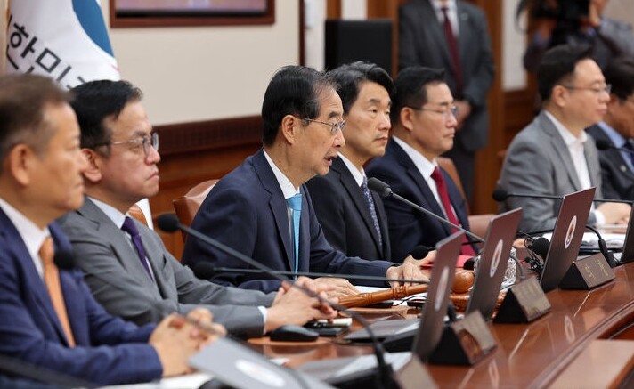 | ▲ 한덕수 국무총리(왼쪽 세번째)가 4일 정부서울청사에서 열린 9·19 군사합의 효력정지 안건을 처리하는 국무회의에서 발언하고 있다. [뉴시스] |