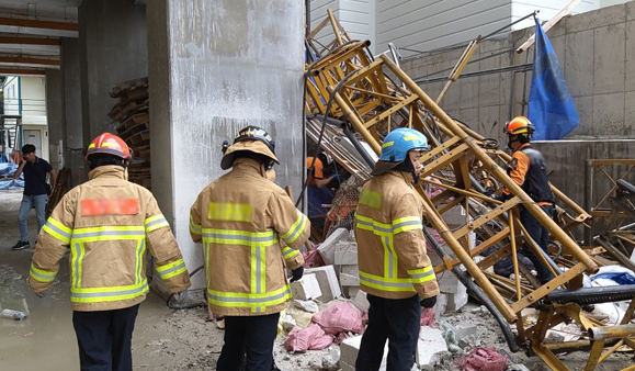 14일 오전 8시 28분께 강원 속초시 조양동의 한 아파트 건축 현장에서 근로자 5명이 탑승한 엘리베이터가 15층 높이에서 추락했다.
