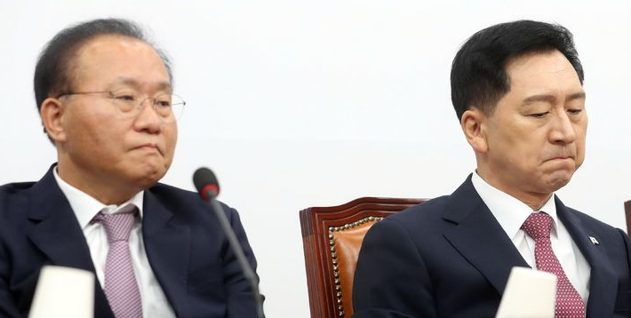 이날 오전 긴급히 열린 최고위원회의는 공지보다 10분 이상 늦게 시작됐고 그마저도 약 7분 만에 끝났다. 김기현호는 "특단의 대책 강구" "분골쇄신"을 외쳤으나 무게가 실리지 않았다.