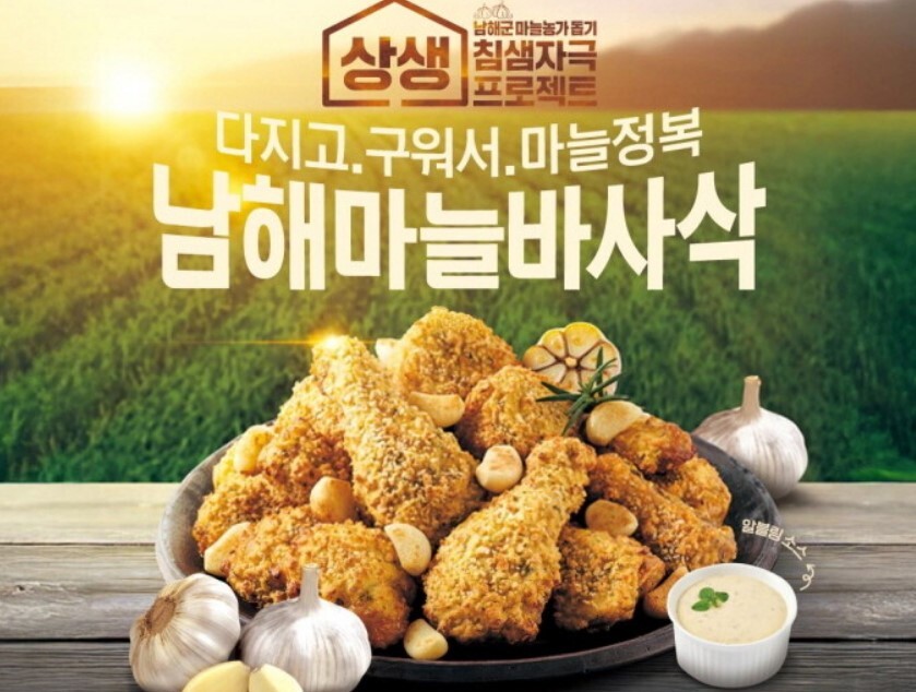 경남 남해군은 지난달 30일 오븐요리 전문 프랜차이즈 '굽네치킨'을 운영하는 ㈜지앤푸드와 남해마늘 소비 촉진을 위한 업무협약을 다시 연장했다고 2일 밝혔다.