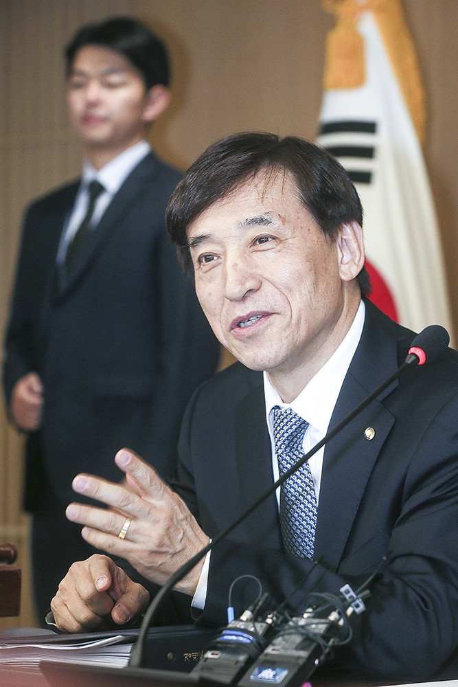 이주열 한국은행 총재가 24일 오전 서울 중구 한국은행 금융통화위원회 회의실에서 열린 2019년 1월 통화정책방향 관련 금융통화위원회에서 취재진의 질문에 답하고 있다.