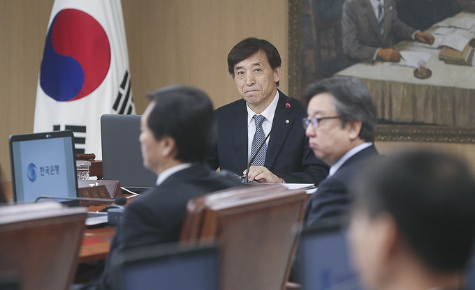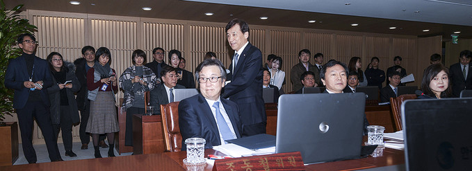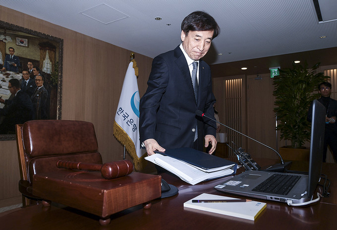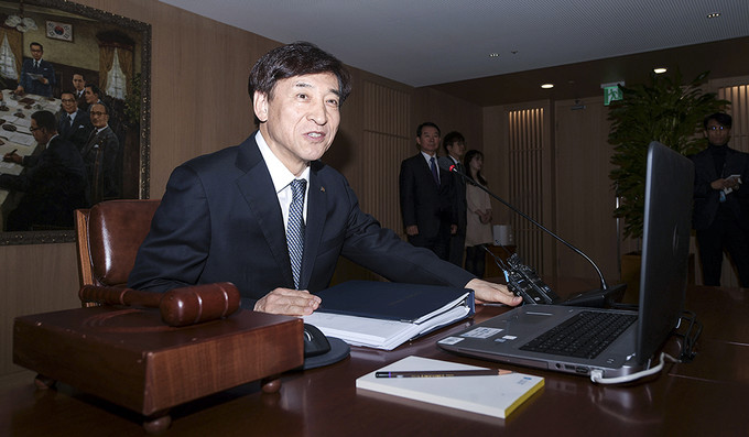 이주열 한국은행 총재가 24일 오전 서울 중구 한국은행 금융통화위원회 회의실에서 열린 2019년 1월 통화정책방향 관련 금융통화위원회에 참석하고 있다.