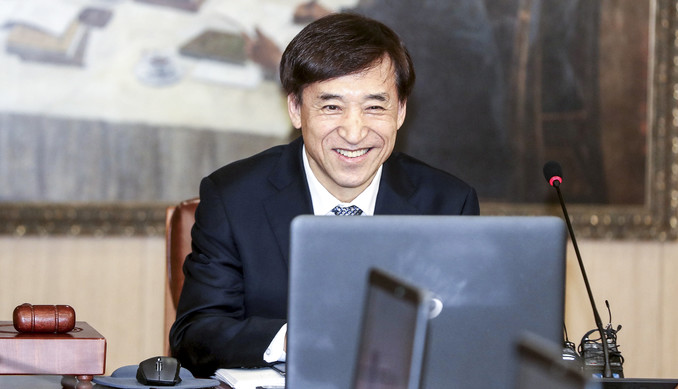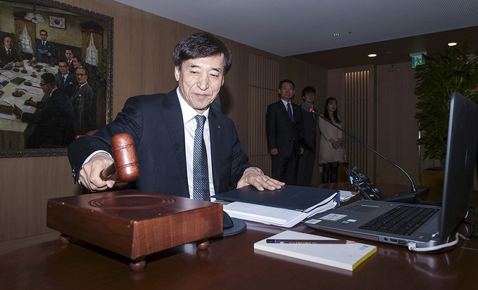 이주열 한국은행 총재가 24일 오전 서울 중구 한국은행 금융통화위원회 회의실에서 열린 2019년 1월 통화정책방향 관련 금융통화위원회에서 의사봉을 두드리고 있다.