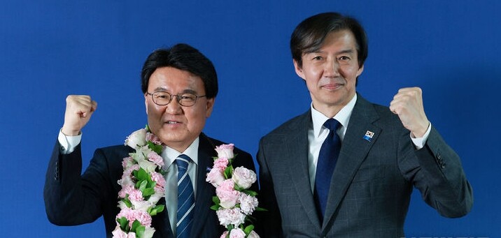 | ▲ 조국혁신당 조국 대표(오른쪽)가 지난 11일 서울 영등포구 극동VIP 빌딩 내 당사에서 열린 파란불꽃선대위 해단식에서 황운하 비례대표 당선인과 기념촬영을 하고 있다. [뉴시스] |