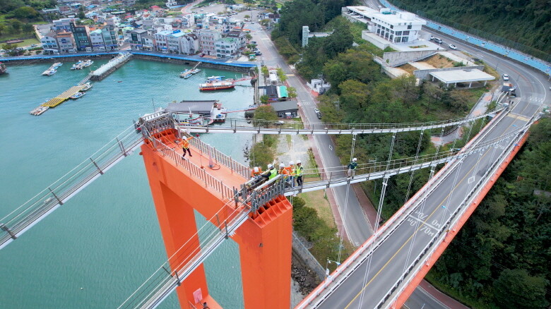 남해대교 메인 케이블에는 교량을 점검하고 보수하는 노동자들의 통행안전을 위해 설치된 교량 점검로가 존재한다. 50년 전 남해대교 건설 당시에는 노동자들의 이동통로였고, 완공 이후에는 지난 50년 동안 점검·보수원들의 안전을 책임진 길이었다.