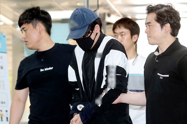 ▲ 5월31일 서울중앙지방법원 영장실질심사에 출석하고 있는 조모 씨. 조 씨는 5월28일 오전 서울 신림동에서 귀가하는 여성을 따라가 집에 들어가려 했다. 경찰은 그에게 강간미수 혐의를 적용했고 법원은 이를 받아들여 구속영장을 발부했다.[뉴시스]