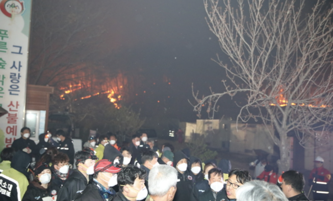 하지만 산불 진화 작업에 투입된 공무원 A(26) 씨가 탈진해 병원으로 이송됐고, B(30) 씨는 발목 골절로 병원에서 치료받고 있다. 현재까지 파악된 주민 인명피해는 없다.