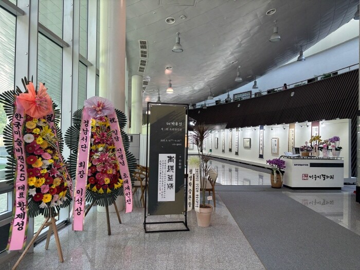 | ▲ 무지개동산에 위치한 '너우니갤러리' 서예 초대전 행사장 입구 모습 [진주시 제공] |