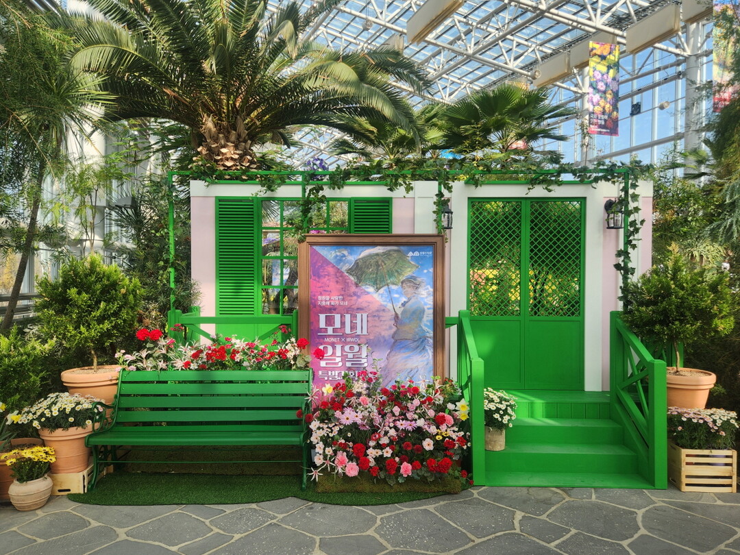 ▲ 일월 수목원 전시온실 입구에 마련된 모네 포토존. [수원시 제공]