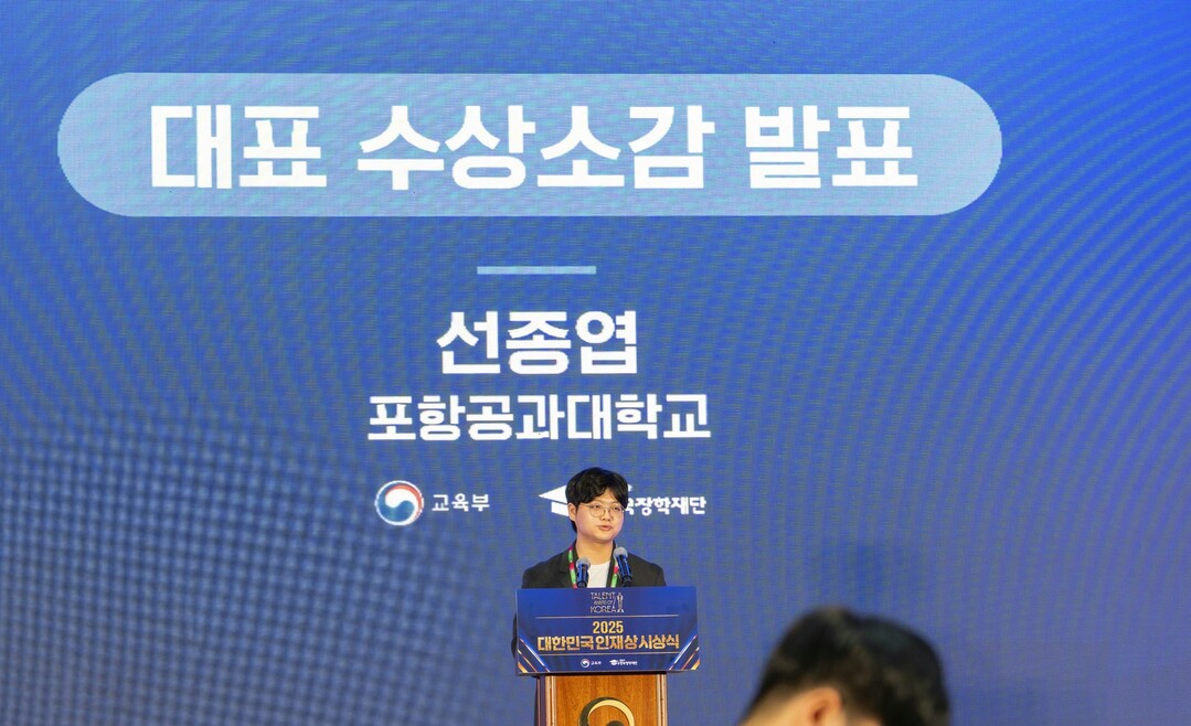| ▲ 포스텍 선종엽 학생이 '2025 대한민국 인재상' 시상식에서 수상자 대표로 소감을 발표했다. [포스텍 제공] |