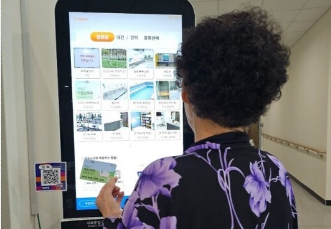 ▲ 목욕카드 이용자가 목욕탕 키오스크로 결제하고 있는 모습 [하동군 제공]